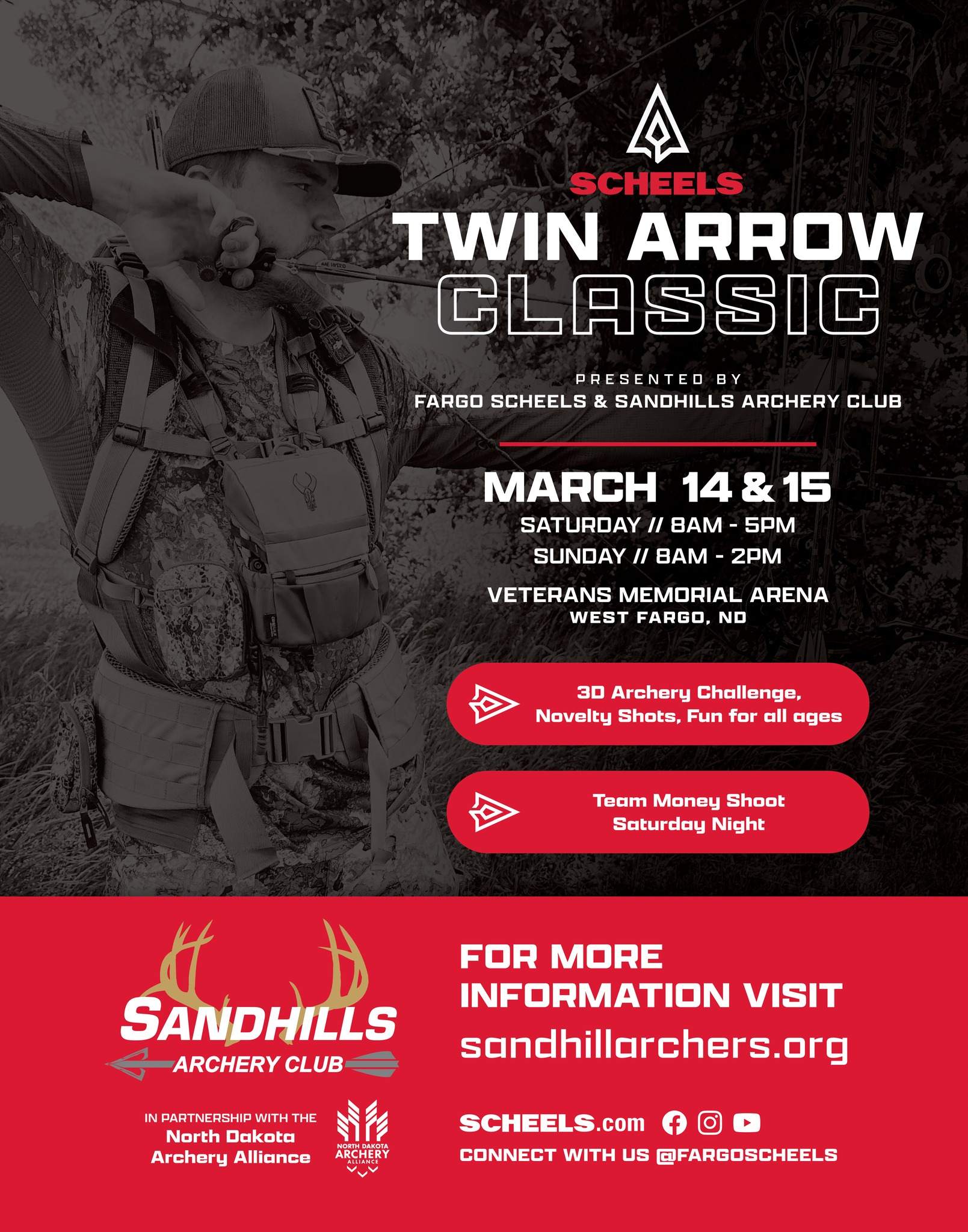 Join the Sandhills Archery Club and Fargo Scheels for the Twin Arrow Classic 3D Shoot in West Fargo!